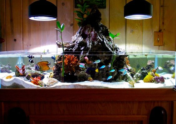 Island or Peninsula: This aquascape creates the illusion of an isolated reef or a peninsula. Rocks and corals are arranged in a way that there are distinct “islands” or a central structure surrounded by open sand areas.